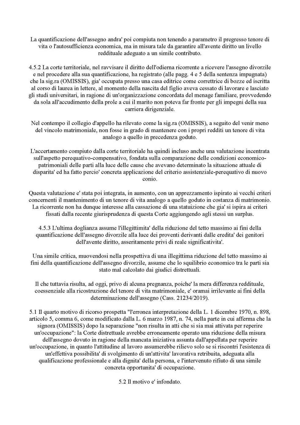 Era stata per l’appunto l'ex moglie a effettuare il ricorso per Cassazione, dolendosi del fatto che nel giudizio di merito non fossero stati considerati adeguatamente i considerevoli miglioramenti reddituali del marito nel corso della loro unione, e nel contempo fosse stata data un'eccessiva valutazione delle sue possibilità patrimoniali future, attribuendo rilevanza all'arrivo dell'eredità paterna. Si trattava peraltro di un caso in cui, pur risalendo a prima dell'introduzione dei nuovi criteri, era comunque stata applicata spontaneamente la funzione compensativo-perequativa, in quanto si trattava di una donna che in effetti, dopo la nascita del figlio, aveva lasciato gli studi universitari e il lavoro per dedicarsi alla famiglia.